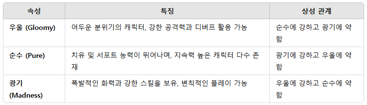 속성 상성은 전략적인 전투에서 매우 중요한 요소로 작용합니다. 적의 속성에 맞춰 팀을 조정하면 전투를 수월하게 진행할 수 있습니다.