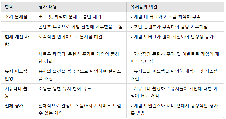 트릭컬 리바이브는 초기 문제점들을 개선하고, 유저들의 피드백을 반영하여 전반적인 퀄리티와 재미가 개선되었습니다. 현재는 유저들의 참여와 소통을 통해 더욱 긍정적인 평가를 받고 있습니다.