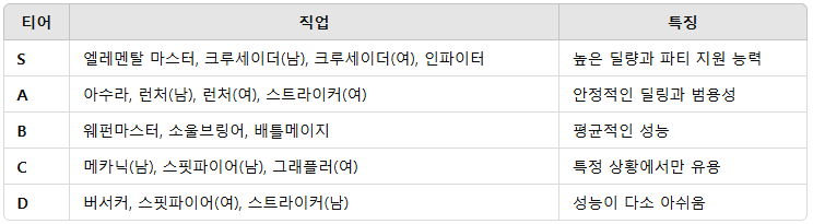 딜러 강추 : 검귀, 암제, 엘레멘탈 마스터