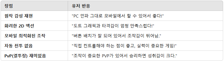던전앤파이터 모바일(DNF Mobile)은 원작의 감성을 살린 2D 횡스크롤 액션 RPG로 많은 기대를 받았지만, 출시 이후 다양한 평가가 나오고 있습니다. 유저들의 실제 반응을 바탕으로 긍정적인 점과 부정적인 점을 정리해봤습니다.